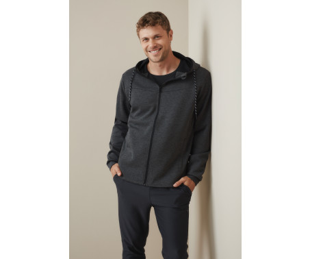 Details: eco-friendly functional fabric, made from recycled plastic bottles (8 per jacket), metal eyelets for drawcord (nickel-free), scuba hood with elastic binding and 2-colour drawcord, 2 side pockets with hidden zippers, zipper with metal puller (nickel-free), decorative flatlock seams, self-fabric cuffs, neck tape, side seams, premium woven size label in the collar, tear-away care labe