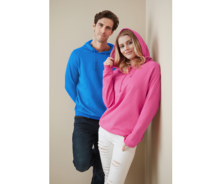 Lightweight with comfort - great for any season! This lightweight unisex hooded sweatshirt with raglan sleeves is brushed inside and by having no front pouch pocket it allows the entire front panel to be decorated.