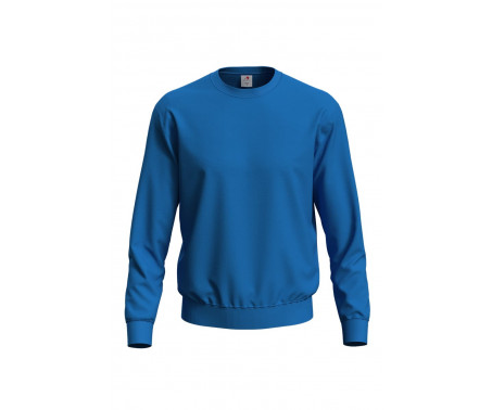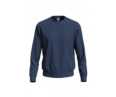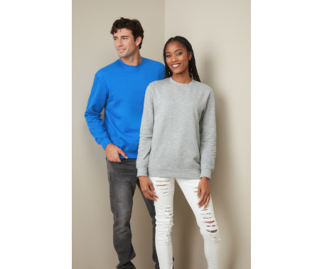 A durable ring-spun cotton-polyester-blend: midweight sweatshirt for men, brushed inside with elastic cuffs and waistband.