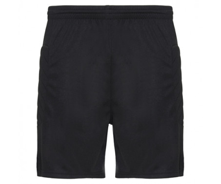 Pantalone corto da portiere unisex con inserti laterali imbottiti. Girovita elastico con cordoncini interni regolabili.