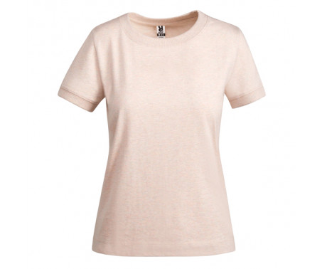 Women's short-sleeved, chunky cotton T-shirt. Crew neck and 2x1 wide ribbed cuffs. Reinforced seam coverage on the collar. Side seams. Roly logo on the left side hem. Wide hem stitching.