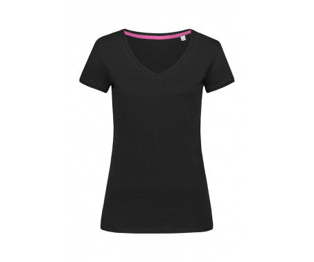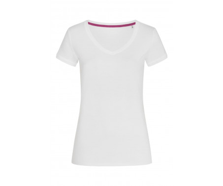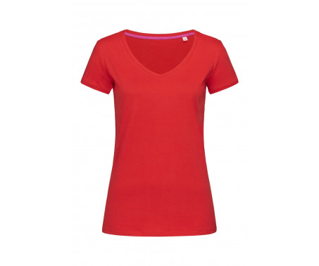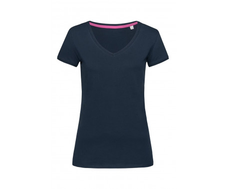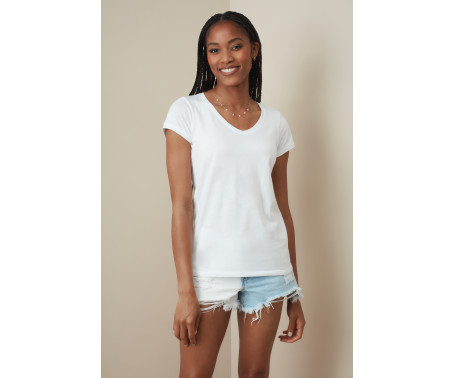 Modern T-shirt for women, with fashionable length and wide V-neck drop made of extra smooth combed ring-spun cotton.