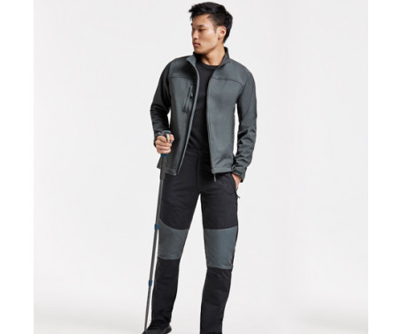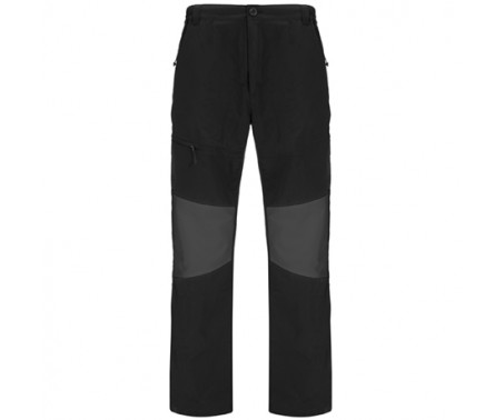Pantalone da trekking con girovita elastico. Toppe in contrasto sulle ginocchia, tasca con cerniera invertita sul lato destro. Tasca posteriore a destra.