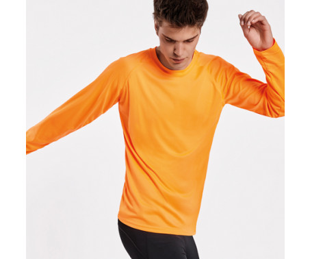 T-shirt tecnica con manica lunga raglan. Manica in tinta (senza tagli laterali). Copri cuciture sul collo. Tessuto traspirante di facile lavaggio e rapida asciugatura.